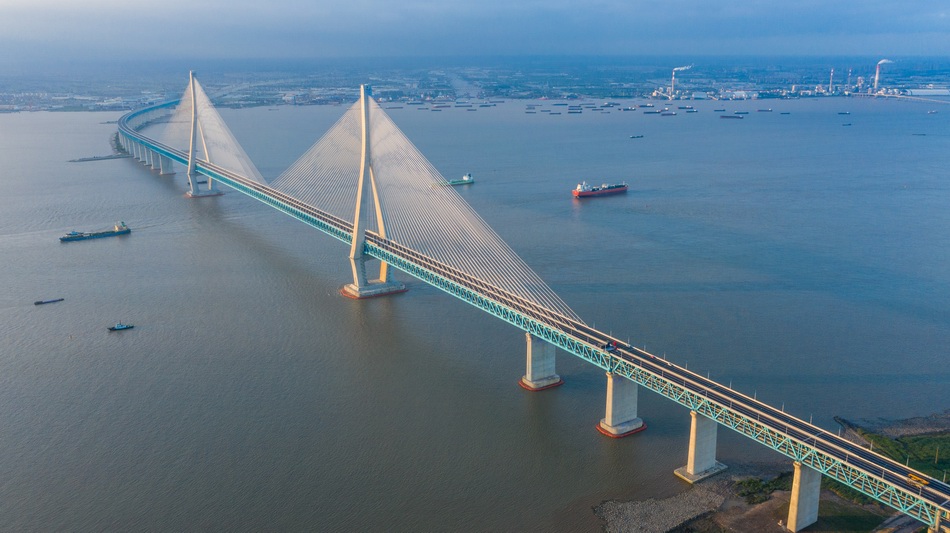 澎湃新聞記者從中國國家鐵路集團有限公司(以下簡稱國鐵集團)獲悉,7月1日,我國自主設計建造、世界上首座主跨為千米級的滬蘇通長江公鐵大橋建成,與滬蘇通鐵路同步開通運營。