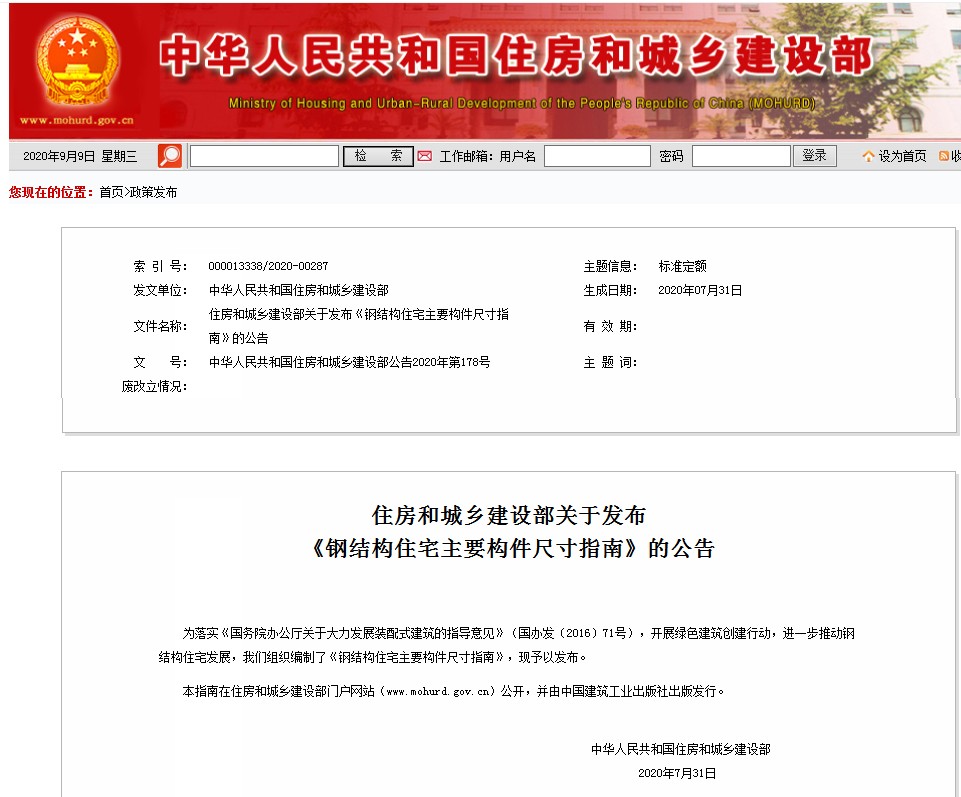 為落實《國務院辦公廳關于大力發展裝配式建筑的指導意見》、開展綠色建筑創建行動、進一步推動鋼結構住宅發展,住房和城鄉建設部組織編制了《鋼結構住宅主要構件尺寸指南》,并于日前印發。